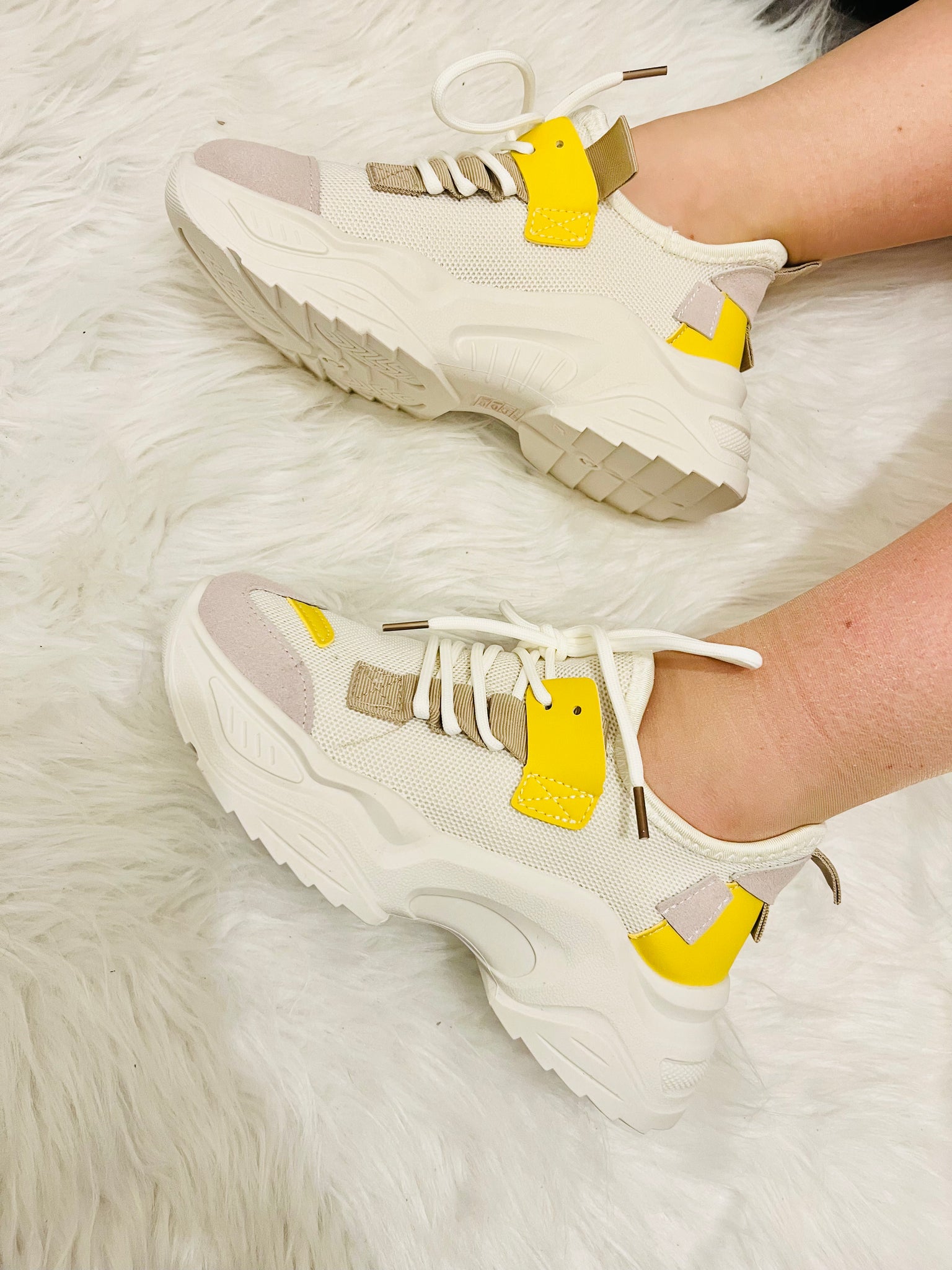 Baskets beige et jaune à lacetes
